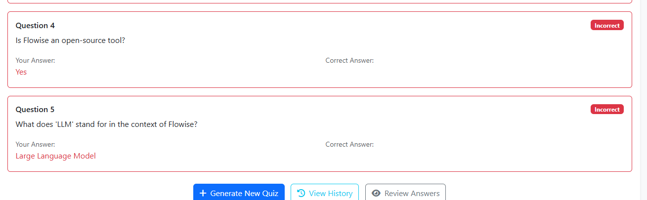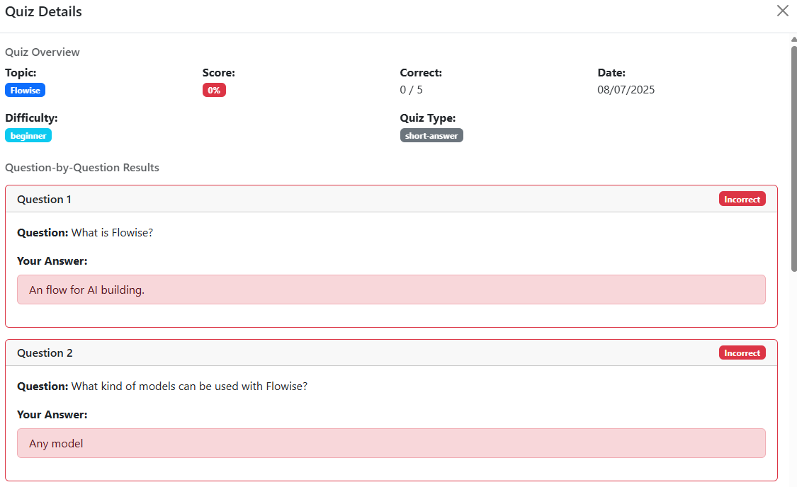 Quiz type "short answer" mode has no answers shown or explaination given #11